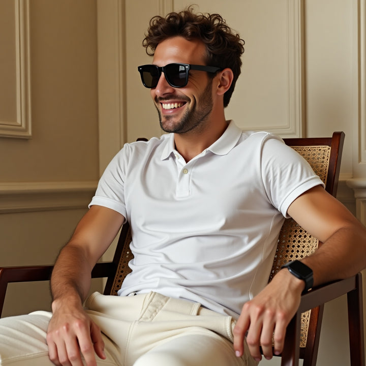 This white solid classic polo tee is your go-to piece for polished simplicity. Crafted from 100% premium cotton, it offers breathable comfort, a structured fit, and an ultra-clean silhouette that works across occasions — from casual hangouts to smart-casual setups.
