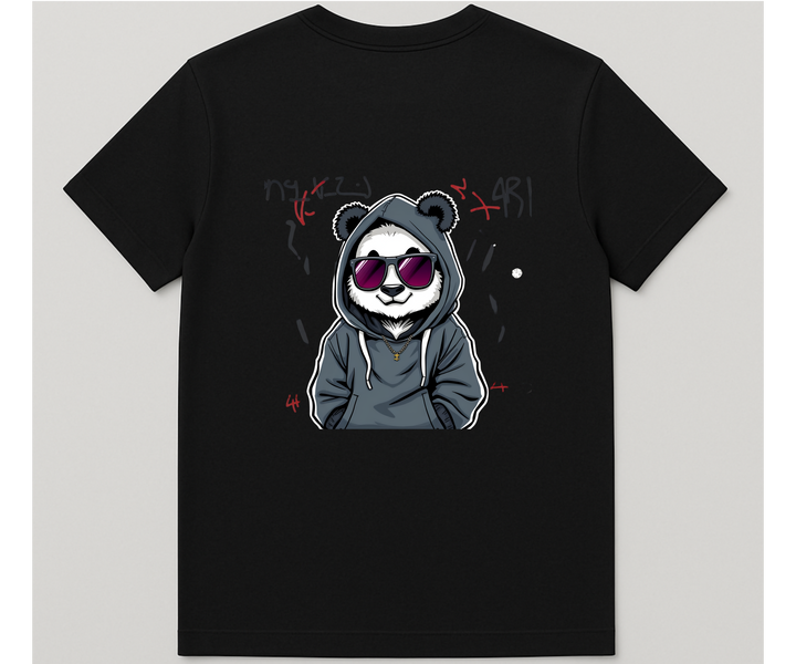 The Panda Hustler Tee is for those who stay low but move loud. Featuring a bold back print of a hustler panda with attitude, this black tee flips expectations β calm on the front, chaos on the back.